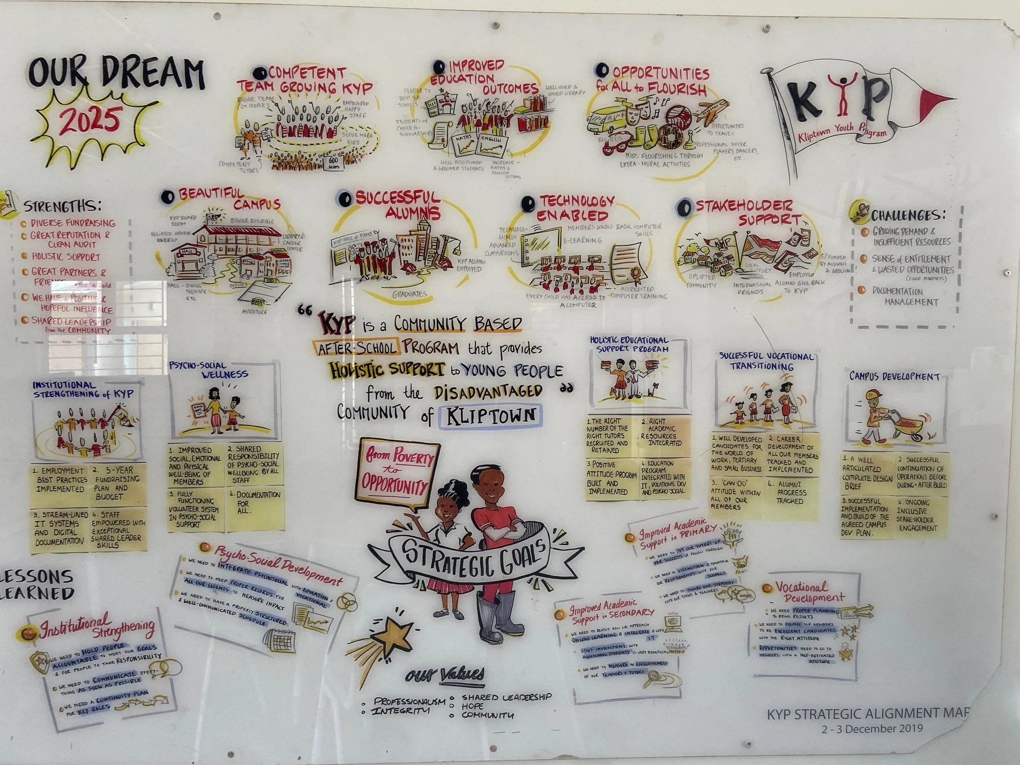 Kliptown Youth Program, or KYP, works to provide opportunities for young people and their families to develop skills. Kliptown is a township in Soweto with a large population of extremely disadvantaged families living in poverty. The youth in Kliptown are vulnerable to both the economic conditions as well as the fact that they lack access to quality education that would foster critical human skills development such as communication, collaboration and problem solving. KYP provides these life skills through education, which results in improved outcomes in school, work, life and communities.